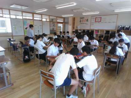 9月13日(金)2年 授業風景 公開日 2024/09/13 更新日 2024/09/13 2年生 1組社会では。前回まで水質、都市化、産業、町並みを視点に近畿地方について調べていました。今日は「身近な地域」富山県について、課題を追究しています。