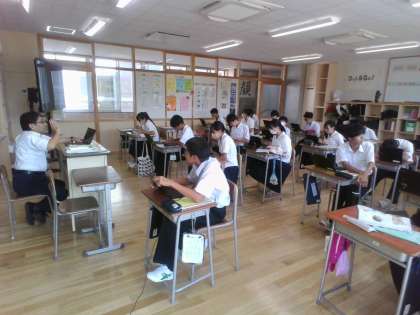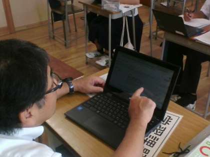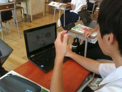 9月13日(金)2年 授業風景 公開日 2024/09/13 更新日 2024/09/13 2年生 2組理科では、皮膚について一人一人がテーマをもって調べ、スライドを作っています。先生も個々のスライドを見ながら提案や質問を投げかけています。つねに対話が交わされる授業となっています。
