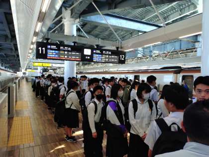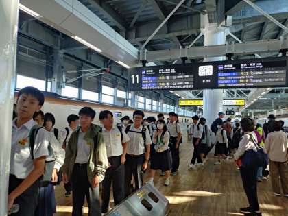 敦賀駅に到着。 あっという間の北陸新幹線乗車でした。 これから乗り換えです。 みんな元気です!