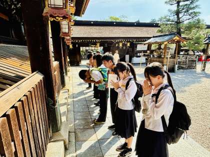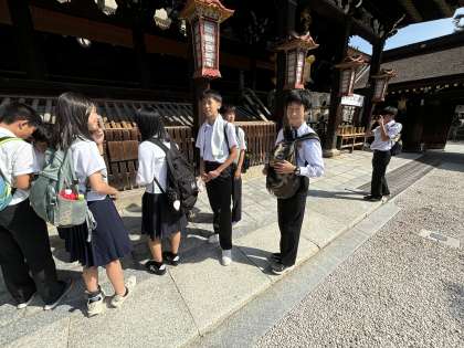10月2日(水)3年 修学旅行 公開日 2024/10/02 更新日 2024/10/02 3年生 1組4班は北野天満宮です。祀られているのが学問の神様ということもあり、生徒は時間をかけて参拝していました。