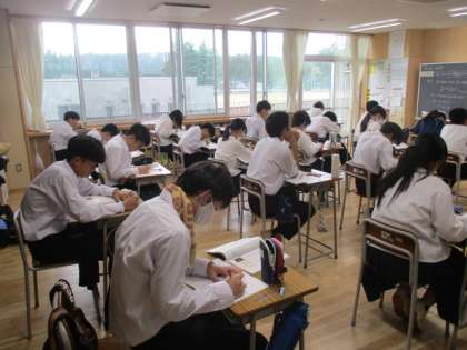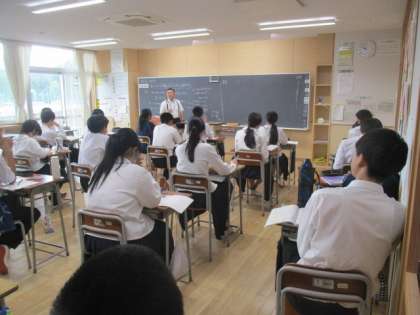 3年生が修学旅行から戻りました。 写真は3−1数学の様子です。 「身の回りにある関数を見つけよう」