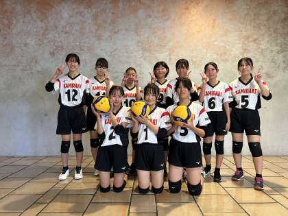 10月11日(金)新人大会 バレーボール部 公開日 2024/10/11 更新日 2024/10/11 部活動 予選リーグ突破はなりませんでしたが、今大会から新たなユニフォームではつらつとプレーしました!