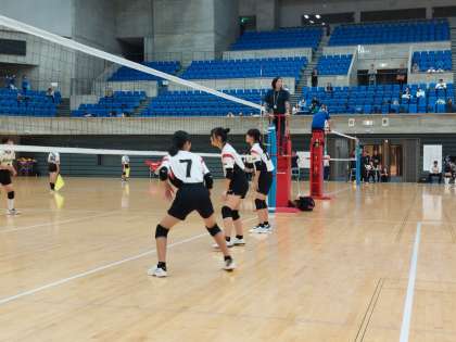 10月11日(金)新人大会 バレーボール部 公開日 2024/10/11 更新日 2024/10/11 部活動 予選リーグ突破はなりませんでしたが、今大会から新たなユニフォームではつらつとプレーしました!