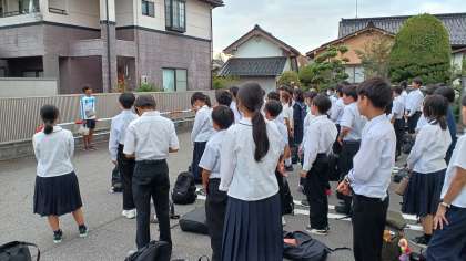 10月17日(木)1年 校外学習 公開日 2024/10/17 更新日 2024/10/17 1年生 全班が時間前に集合し、予定どおり地鉄で上滝駅まで戻ってきました。 学校では、電車の通過時間に合わせて職員と上級生たちが出迎えてくれました。 最後に、駅近くで元気に帰着式を行い、解散しました。 時間とマナーを意識して活動することができ、今後の課題を見付け、金沢校外学習、修学旅行につながる一日となりました。