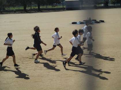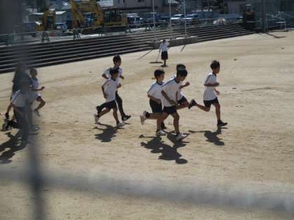 1−2体育の様子です。 今日から持久走の授業が始まりました。 みんな張り切って走っています!