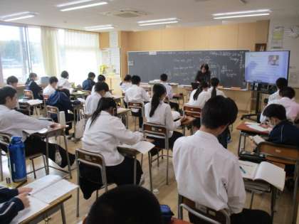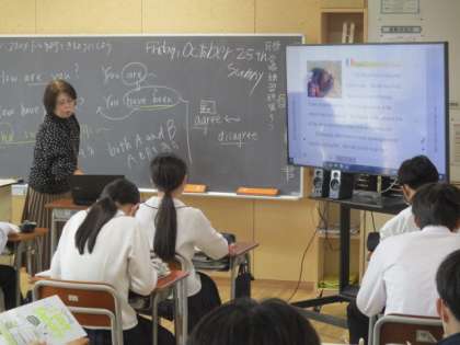 3−1英語の様子です。 「〜している〇〇 という表現を学び、クラスメートを紹介できるようになろう」
