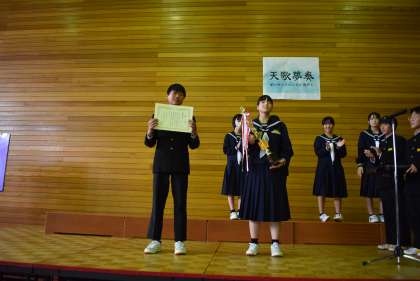 11月1日(金)文化活動発表会 公開日 2024/11/01 更新日 2024/11/01 学校生活 合唱コンクール表彰式の様子です。 (上)審査委員長 谷崎修一さんに講評をいただきました。 (中)最優秀賞 3年1組! (下)実行委員長のあいさつ