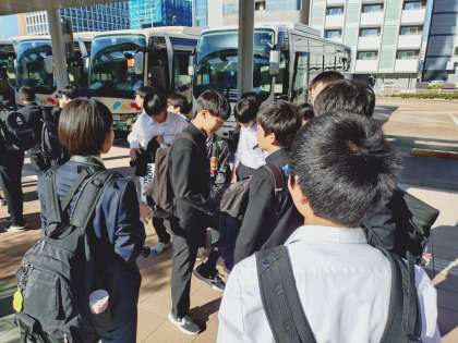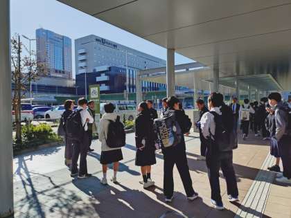 金沢駅西口に到着。班ごとに元気に出発しました。