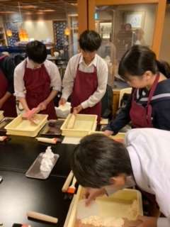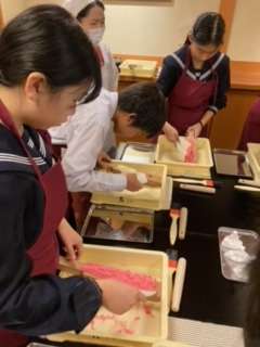 8班、「森八」さんでの和菓子作り体験の様子です。