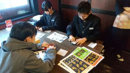 3班は「かなざわ 美かざり あさの」さんで金箔貼り体験をしています。