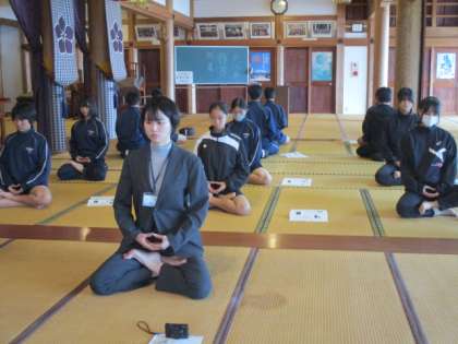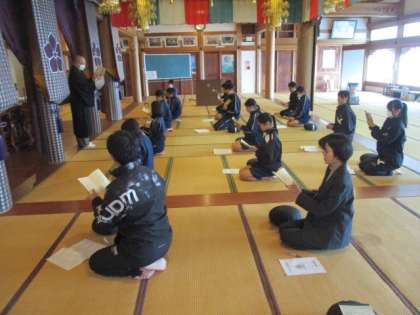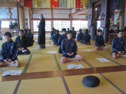 11月16日(土)ふれあい坐禅のつどい 公開日 2024/11/16 更新日 2024/11/16 その他 ふれあい坐禅のつどいに参加した生徒たちの様子です。 この行事は、青少年育成富山市民会議大山支部が本校生徒のために毎年企画してくださっている恒例行事です。 今年は生徒11名と教員2名が参加し、大川寺さんで坐禅体験をさせていただきました。 生徒にとって大変貴重な経験ができる機会となっています。