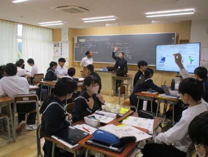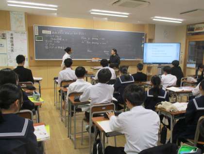 ALTの先生と共に、ゲームを通して「現在進行形」について学びました。