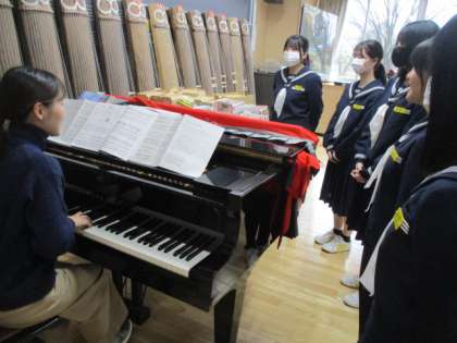 12月5日(木)3年 授業風景 公開日 2024/12/05 更新日 2024/12/05 3年生 3−2音楽の様子です。 1/18(土)「音楽のつどい」全校で歌う『Voyager』『ほらね、』の練習に取り組んでいます。