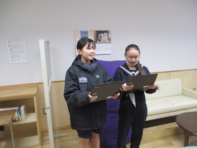 1月14日(火)「音楽のつどい」に向けて 公開日 2025/01/14 更新日 2025/01/14 学校生活 18日(土)の「音楽のつどい」で進行役を務める生徒2名が、当日の流れを確認しながら、熱心に練習しています。 当日の元気な進行ぶりにも、乞うご期待です!