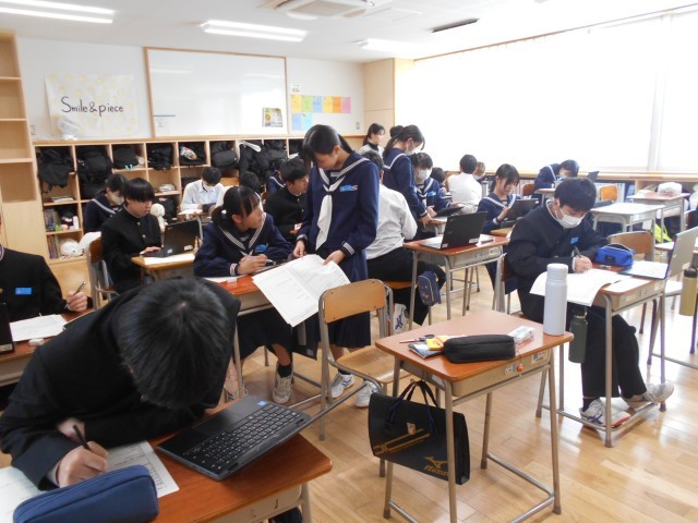 今日の6限の総合では、全員が受講予定の職業について調べ、質問を考えました。(写真3)