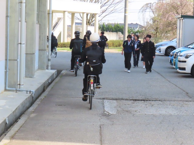 4月17日(木)「登校風景」 公開日 2025/04/17 更新日 2025/04/17 学校生活 おはようございます。気持ちよく晴れた朝です。徒歩で通う生徒、自転車で通う生徒、バスで通う生徒がいる上滝中学校です。今日は3年生で全国学力・学習状況調査があります。今日もよろしくお願いします。