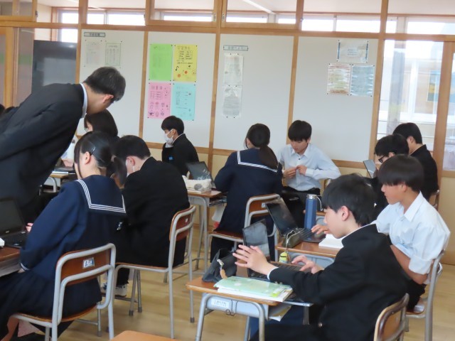 4月21日(月)2年生「授業のようす」 公開日 2025/04/21 更新日 2025/04/21 2年生 2時間目のようすです。(写真上)1組社会「地形図を読み取ろう」(写真中)2組国語「アイスプラネット -教え合って正解にたどり着こう-」(写真下) 〃