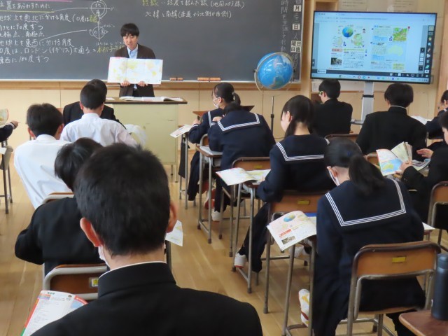 4月22日(火)1年生「授業のようす」 公開日 2025/04/22 更新日 2025/04/22 1年生 1時間目はそれぞれの担任の授業でした。(写真上)1組数学「数に親しもう」(写真中) 〃(写真下)2組社会「世界の国や都市の位置を表すには?」