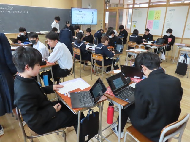 4月23日(水)2年生「授業のようす」 公開日 2025/04/23 更新日 2025/04/23 2年生 (写真上)1組国語「力を合わせて記述問題を解こう」(写真中)2組英語「理子たちのこの後の行動をよみとろう」(写真下) 〃