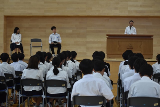 発表する生徒の身近な体験を基にした内容に、生徒らは感じ入るように聞いていました。