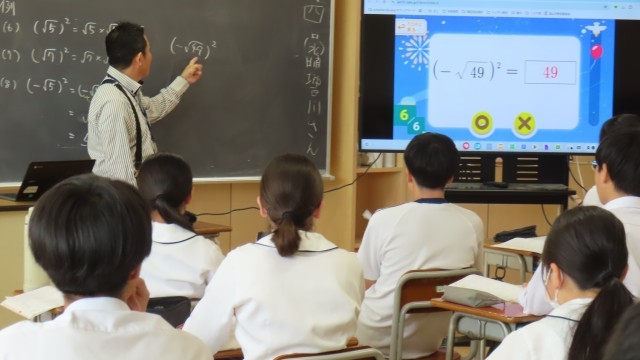 (写真上)1組数学「√がとれる場合を理解し、√をとってみよう」