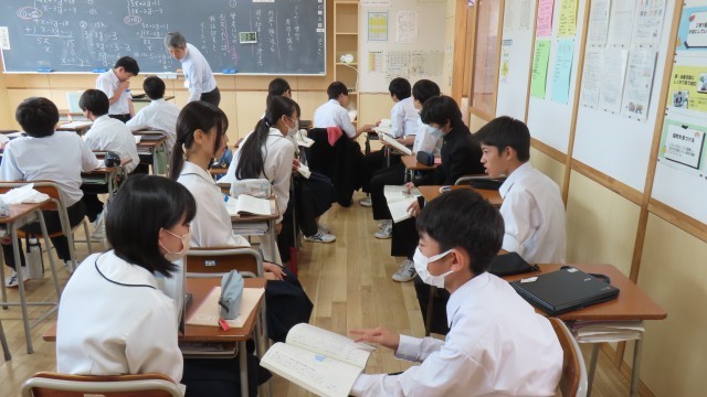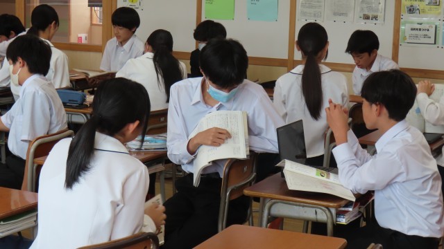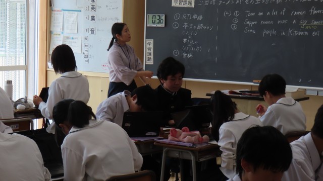 6月4日(水)2年生「授業のようす」 公開日 2025/06/04 更新日 2025/06/04 2年生 3時間目の2年生は・・・(写真上)1組国語「内容を振り返る、図の効果を考える」(写真中) 〃(写真下)2組英語「ご当地ラーメンがその土地に根付いた理由を読み取ろう」