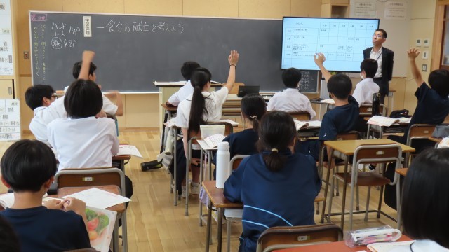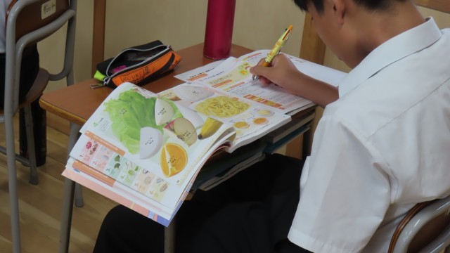 6月10日(火)1年生「授業のようす」 公開日 2025/06/10 更新日 2025/06/10 1年生 3時間目の授業です。(写真上)1組家庭「一食分の献立を考えよう」(写真中) 〃(写真下)2組数学