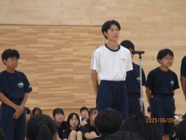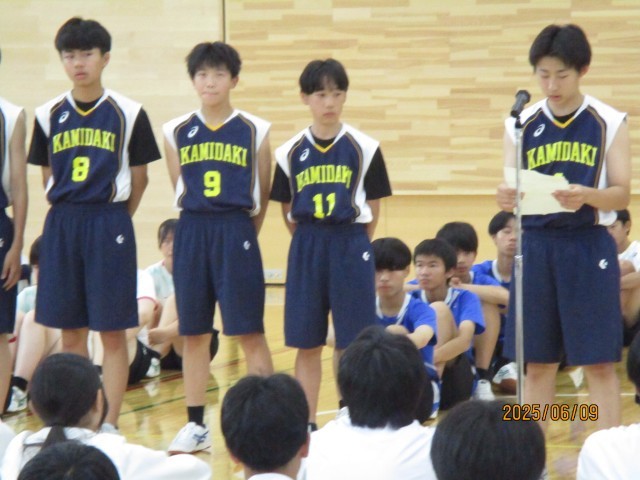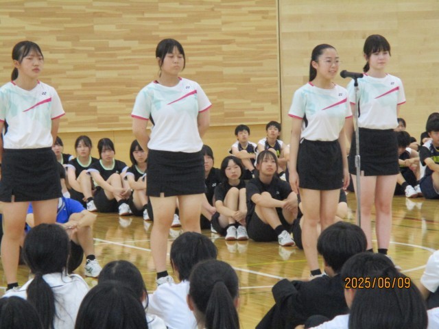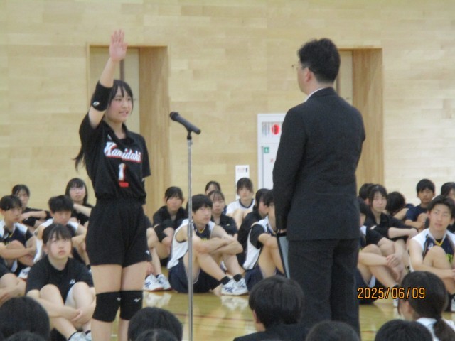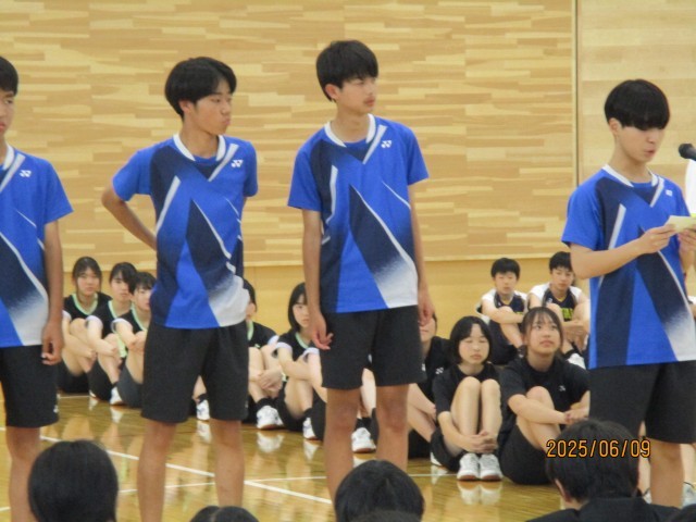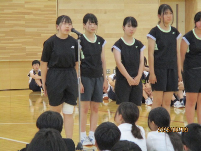 各部の代表が抱負を語り、バレー部主将が力強く宣誓しました。