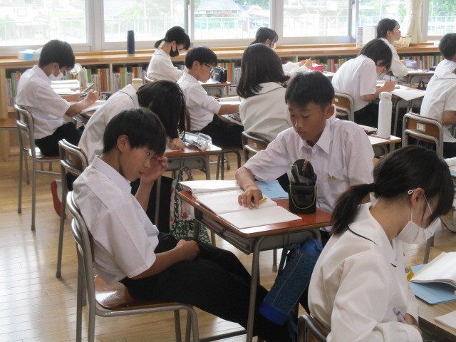 6月12日(木)1年生「授業のようす」 公開日 2025/06/12 更新日 2025/06/12 1年生 4時間目の授業です。(1~4枚目)1-1数学 練習問題に取り組んでいます。(5~6枚目)1-2国語 「ちょっと立ち止まって」の読解です。 +3