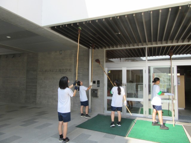 7月7日(月)2年生「14歳の挑戦 上滝中学校」 公開日 2025/07/07 更新日 2025/07/07 2年生 初日が定休日と重なり、事業所での活動ができなかった生徒たちは、上滝中学校で社会奉仕活動を行いました。普段は手が届かない所の蜘蛛の巣取りや、学校備品の点検等を行いました。