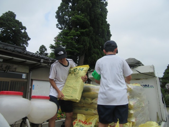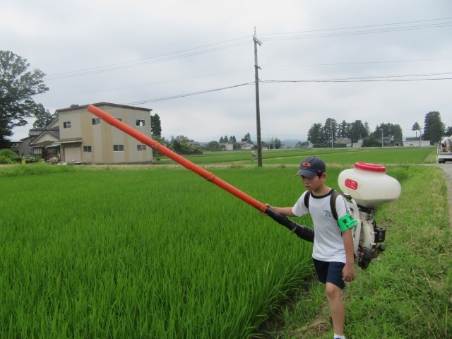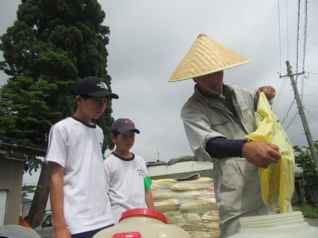 7月8日(火)2年生「14歳の挑戦 営農ワイエムアイ」 公開日 2025/07/08 更新日 2025/07/08 2年生 田園地帯にて、稲がすくすく育つように肥料をまく作業を体験していました。20kgの肥料を持ち上げて散布機に入れ、計30kgをしっかりと担ぎ、畝を踏みしめ全体にまくことができました。従業員の方や地域の方から、作業工程や稲穂が育つ過程を真剣に聞き、手が空いた時は自分にできる仕事を考えて行動していました。(保護者ボランティアの方より) +1
