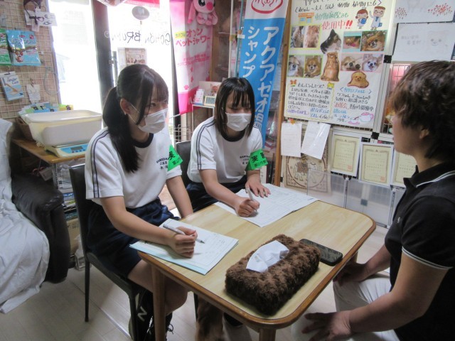 7月8日(火)2年生「14歳の挑戦 シェーンブルン」 公開日 2025/07/08 更新日 2025/07/08 2年生 ペットの健康について、お話をしていただきました。ペットも人間と一緒で、健康のためには生活習慣を整えることが大切なのだと学んでいました。午前中は、チワワの手足の毛を整えたり、ひげを切ったりなどトリミングにも挑戦したようです。