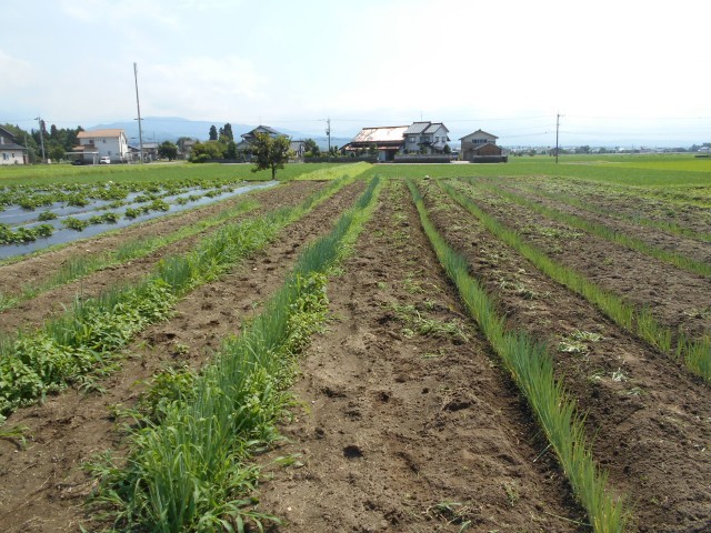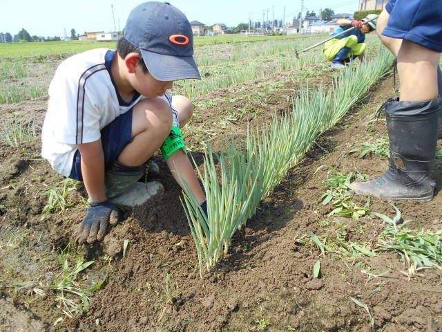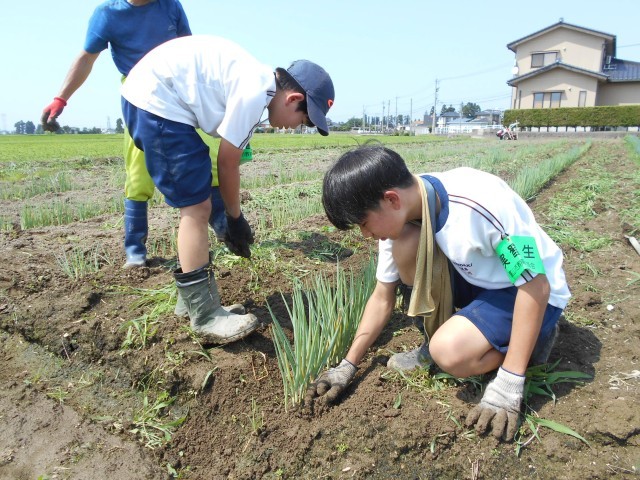 7月9日(水)2年生「14歳の挑戦 営農ワイエムアイ」 公開日 2025/07/09 更新日 2025/07/10 2年生 暑い日差しの中、ネギが大きく成長するように、周囲の草を抜く作業を進めていました。大変な作業ですがよく頑張っていると、指導ボランティアの方に褒めてもらっていました。写真3枚目の左側がBefore、右側がAfterです。とてもすっきりしていることが分かります。作業の合間の休憩には、綺麗で冷たい水路の水で手足を冷やし、気分をリフレッシュしていました。 +1