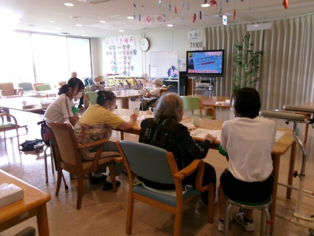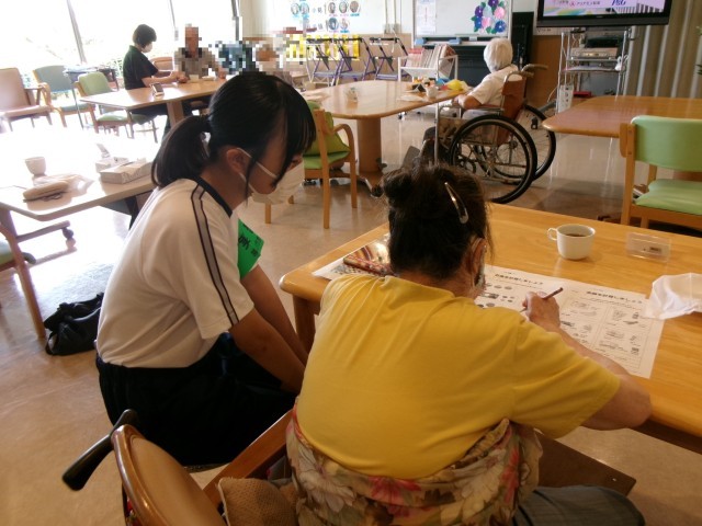 7月10日(木)2年生「14歳の挑戦 はなさき苑」 公開日 2025/07/10 更新日 2025/07/10 2年生 デイサービスの利用者さんに、積極的に声をかけて、優しく関わる姿が見られました。にこやかに話し相手になっており、利用者の方にとっても良い刺激になっているようでした。指導ボランティアの方からも「自分たちでできることを見つけて積極的に頑張っています。」との言葉をいただきました。(保護者ボランティアの方より)