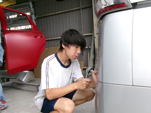 7月10日(木)2年生「14歳の挑戦 仁平」 公開日 2025/07/10 更新日 2025/07/10 2年生 車の壊れたパーツを外す作業をしていました。本人たちは「取りにくいところのネジを外すのは見えないし、固いし大変だ。」と言っていました。また、タイヤ交換は一人でできるようになったので、家庭でのタイヤ交換も手伝いたいと話しており、頼もしく感じました。(保護者ボランティアの方より) +1