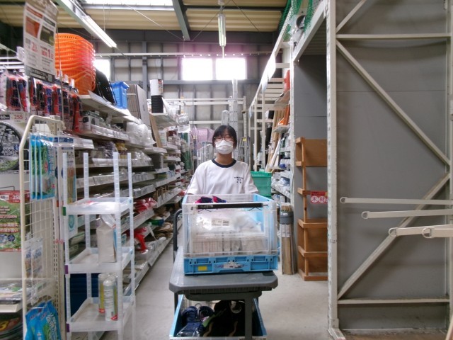 14歳の挑戦も4日目になり、品出しや商品整理にも慣れてきたようです。商品整理のときは、横から見てガタガタにならない様に、一列にきれいに並べていました。指導ボランティアの方も「頑張ってやってくれているので、助かります。」と言ってくださいました。(保護者ボランティアの方より)