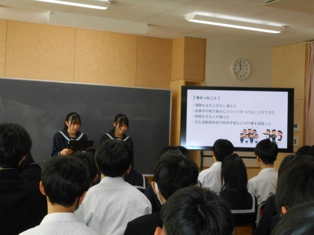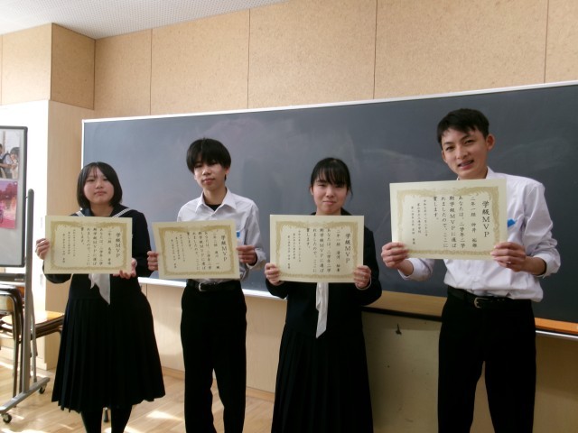 生徒たちは真剣に話を聞き、2学期の反省や今後の活動について考えていました。また、MVPやスマイルフォトコンテストの表彰では、和やかな雰囲気の中で、受賞者たちを称えていました。