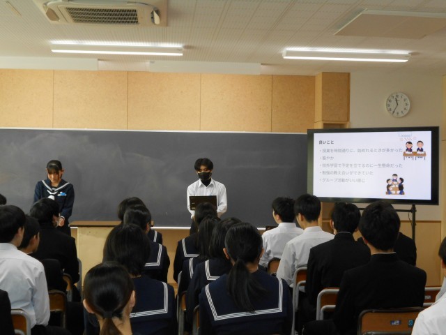 学年プログラム委員から、今学期の振り返りと今後に向けた目標について話をしたり、今学期の学級MVPや金沢校外学習のベストスマイルフォトの表彰を行ったりしました。
