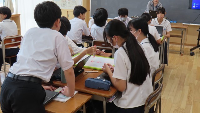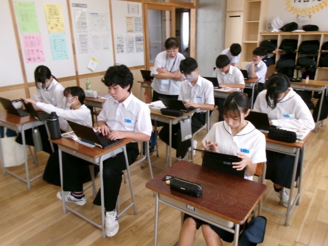 なお、今日の2年2組の授業は、3年次研修会の一環で他校の先生方にも公開しました。