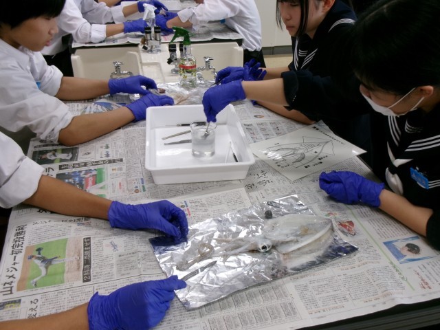 2-1理科では、イカの解剖をして体のつくりを観察しています。