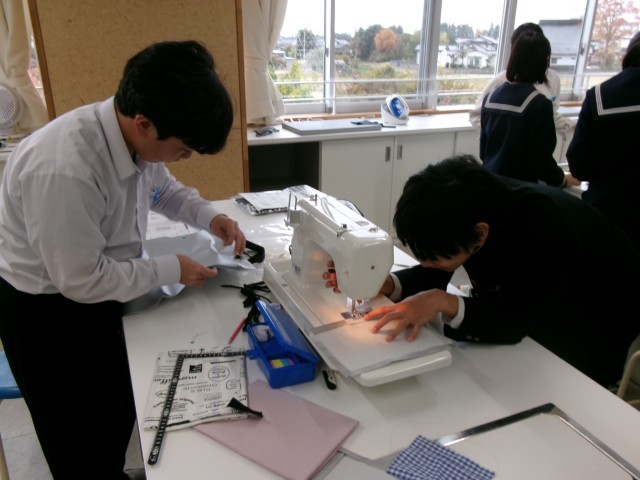 2-2家庭科では、ミシンでトートバッグを製作しています。