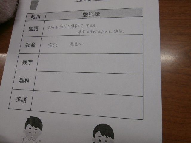 5限の学活では、各教科の学習方法について話し合い、自分はどんな学習方法で取り組んでいきたいかを考え、具体的な方法を書いていました。中学校最後の1年間、目標をもって自分で考え、学習を進めていくことが大切です。今日決めた方法を実践していってほしいです。がんばれ!3年生。