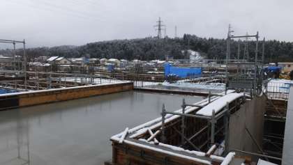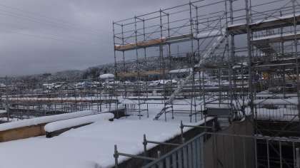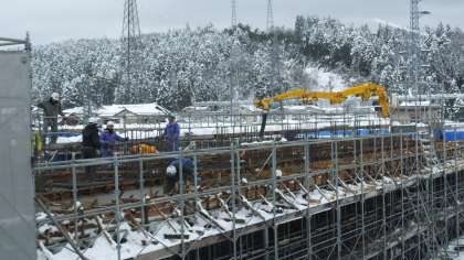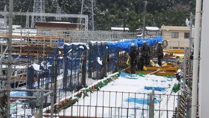雪が積もっていますが、工事は着々と進んでいます。 -