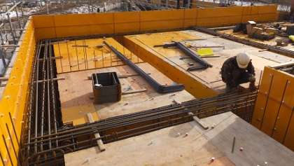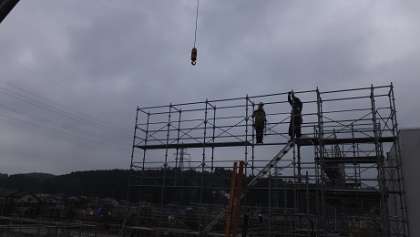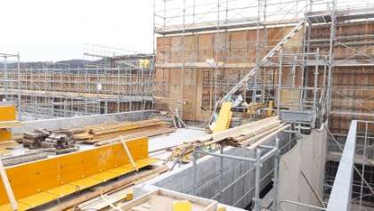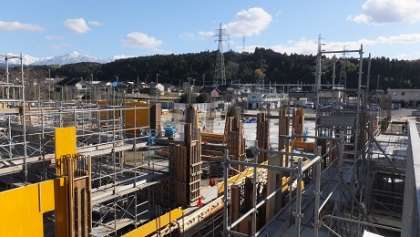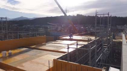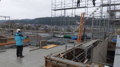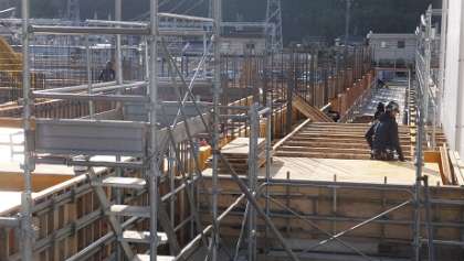 壁や柱の型枠が組まれ、いよいよ建物の姿がぼんやり見えてきました。