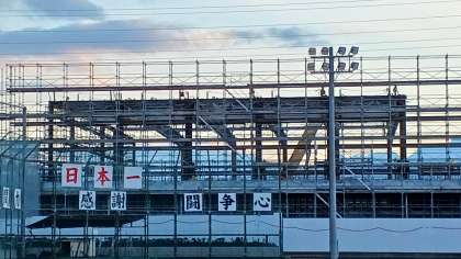アリーナ部分の鉄骨が組み上がり、新体育館の大きさが分かります。