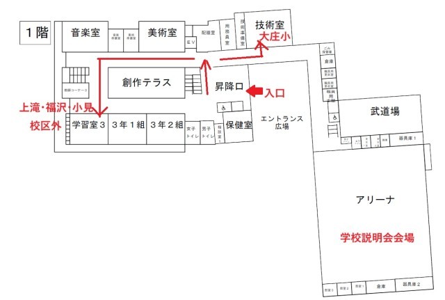 ・上滝小、福沢小、小見小、その他の小学校:普通教室棟1階「学習室3」へ