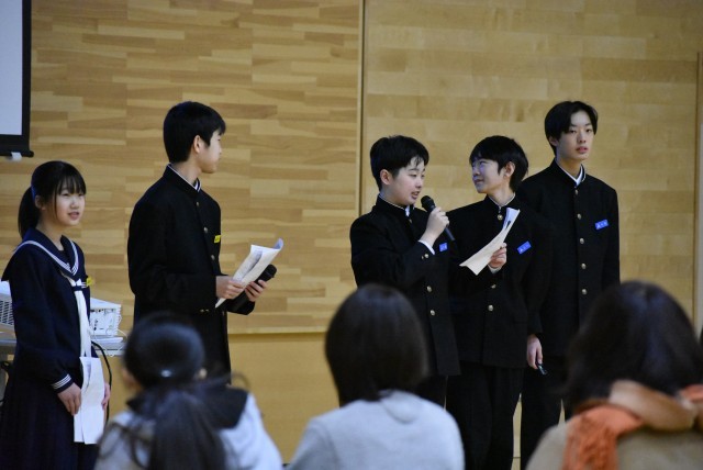 生徒会執行部からは、上滝中学校で楽しい学校生活を送るための秘訣を紹介しました。