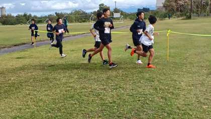 時折小雨が降る肌寒い中でしたが、参加した生徒は皆元気に走りました。 -