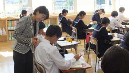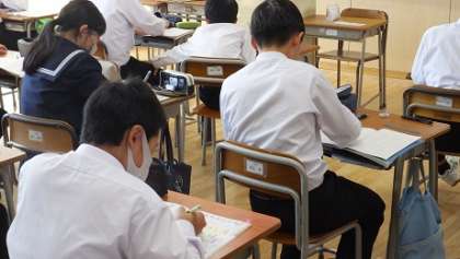 どれだけ聞き取れたか、友達と確認し合っています。 -