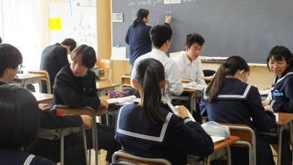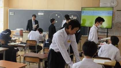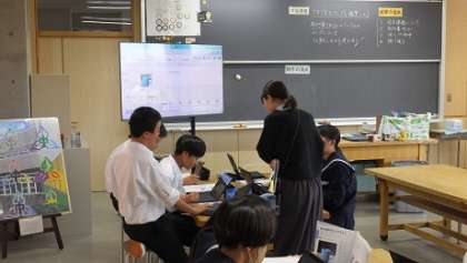 前回の時間に、班の中で選ばれた生徒たちが、クラス全体に向けて発表しました。
